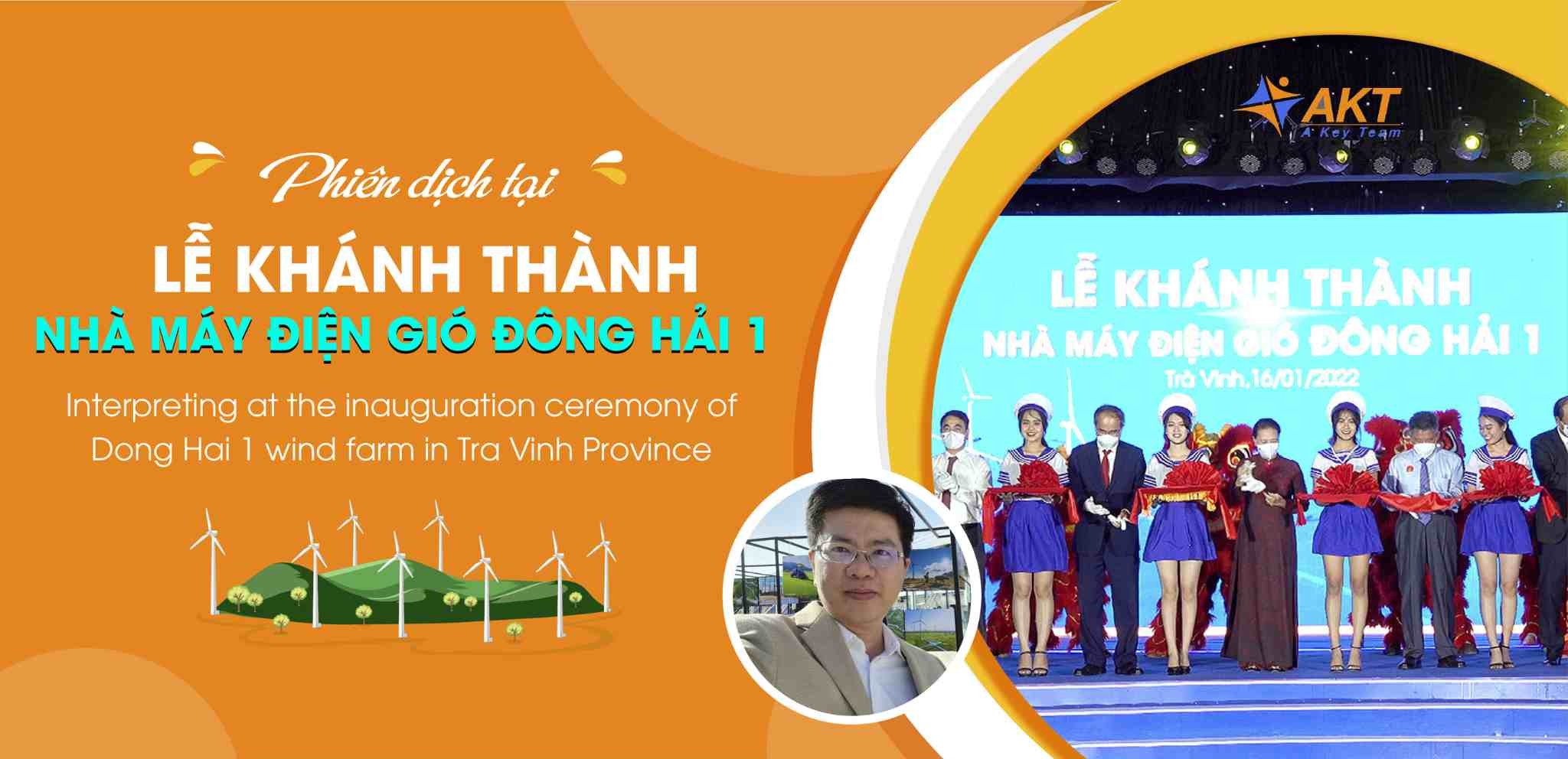 Interpreting at the inauguration ceremony of Dong Hai 1 wind farm in Tra Vinh province