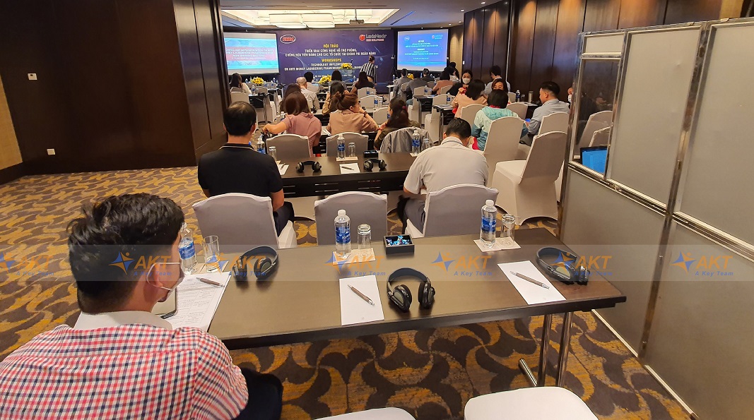 Trusted by organizers – Vietnam Banking Association and LexisNexis Risk Solutions, AKT simultaneous interpretation team has contributed greatly to the success of the event. Our high-quality service is demonstrated by the accurate and faithful translation of AML regulations in Vietnam, which facilitates the following Q&A sessions on the implementation of KYC screening solutions and customer data protection via third-party cooperation.