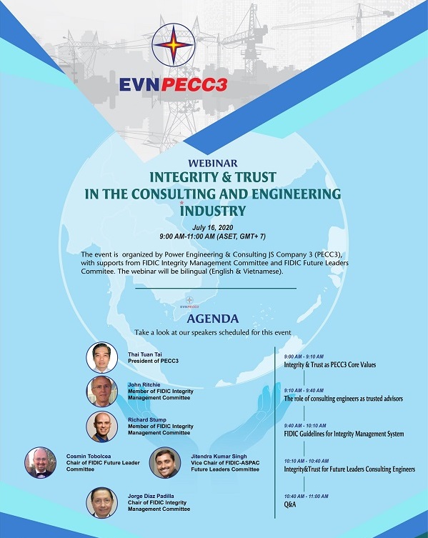 In July 2020, webinar “Integrity and Trust in the Consulting and Engineering Industry” was held by Power Engineering and Consulting JS Company 3 (PECC3) with the supports of the FIDIC Integrity Management Committee and FIDIC Future Leaders Committee.