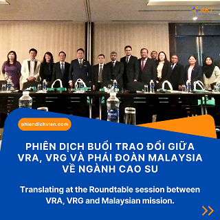 Translating at the Roundtable session between VRA, VRG and Malaysian mission.View MoreVietnam Rubber Association (VRA), together with Vietnam Rubber Group (VRG), has had a meeting with MPIC-led economic and product promotion mission. The goal is to update rubber market information from both sides and facilitate business matching.