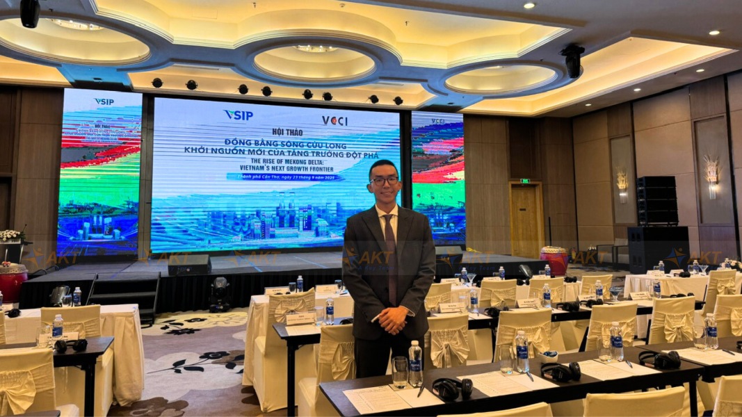 At the "Mekong Delta – A New Wellspring of Breakthrough Growth" workshop, jointly organized by the Vietnam Chamber of Commerce and Industry (VCCI) and VSIP Can Tho Industrial Park, the AKT interpretation team was once again entrusted with the critical task of disseminating not only the VSIP Can Tho CEO's message but also sharing the success stories of foreign investors within VSIP.