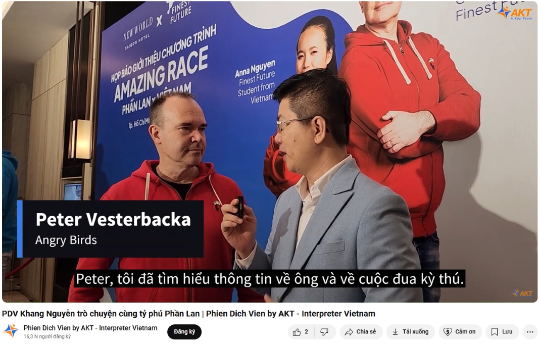 In order to reach a larger audience, the AKT English Vietnamese interpreters teamed up with Finest Future to present the thrilling episode of the Red Team's adventure in "The Amazing Race Suomi" to Vietnamese viewers.