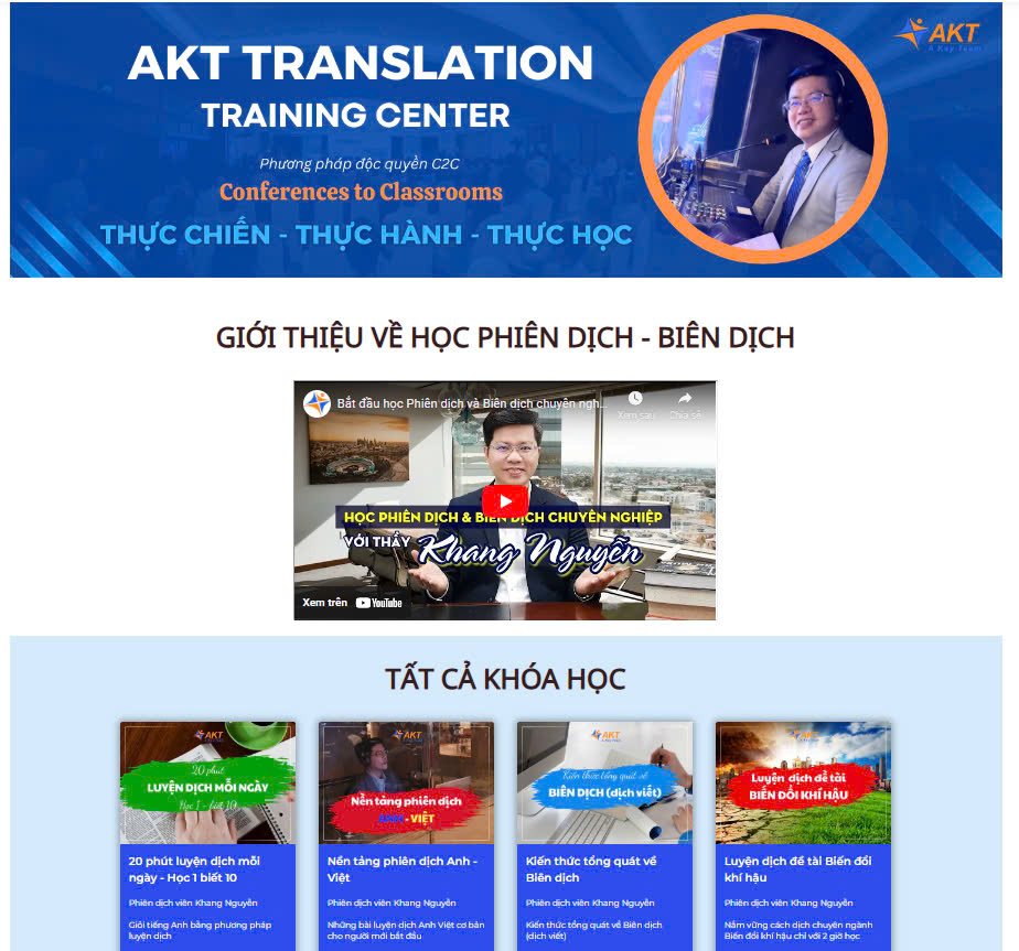 Đào tạo phiên dịchXem thêmPhương pháp luận giảng dạy của chúng tôi đến từ các quan niệm về đào tạo hiện đại mà trong đó người học là một phần tích cực của bài học. Điều thú vị là mỗi buổi học sẽ không đóng khung trong chương trình và tài liệu, bởi vì, tùy theo cách học viên tương tác với giảng viên và sự tiến bộ của học viên mà nội dung học sẽ tùy chỉnh theo.