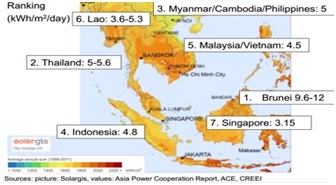 Đông Nam Á có radiance khá cao như bảng thống kê. Khí hậu nơi đây có đặc trưng là nhiệt đới gió mùa, nhiệt độ và độ ẩm cao (tropical monsoon, high heat and humidity)