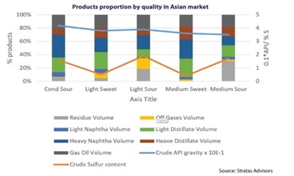 Đầu vào đương nhiên là dầu thô (crude oil), được phân loại theo tính chất chua và ngọt. Tin hay không thì tùy, nhưng chúng ta gọi tính chất chua và ngọt này theo đúng nghĩa của chúng: Sour and Sweet. Chua là do độ Sulphur cao, và ngọt là dầu tốt, dễ xử lý hơn. Chúng tôi chưa có cơ hội nếm thử, nhưng thôi, chắc là tin vào từ ngữ mô tả là được rồi!