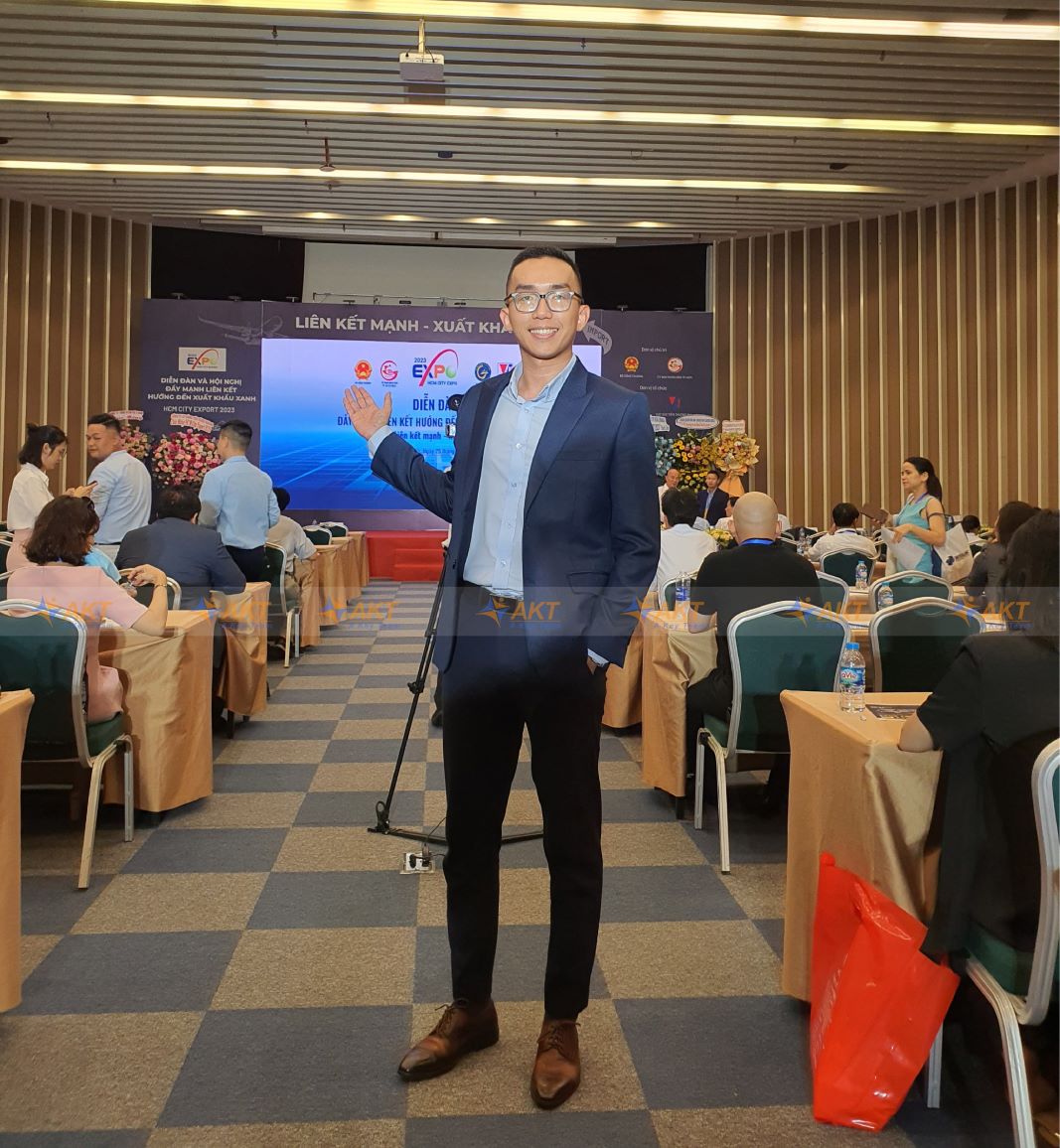 Dưới sự chỉ đạo của UBND TP.HCM và Bộ Công Thương, Sở Công Thương TPHCM cùng Cục xúc tiến thương mại (Vietrade) đã tổ chức Diễn đàn & Hội chợ xuất khẩu TP.HCM 2023 với thông điệp Liên kết mạnh – Xuất khẩu xanh. Phien Dich Vien by AKT vô cùng hãnh diện khi là đơn vị cung cấp dịch vụ phiên dịch chính cho các buổi hội nghị, diễn đàn bên lề Hội chợ.